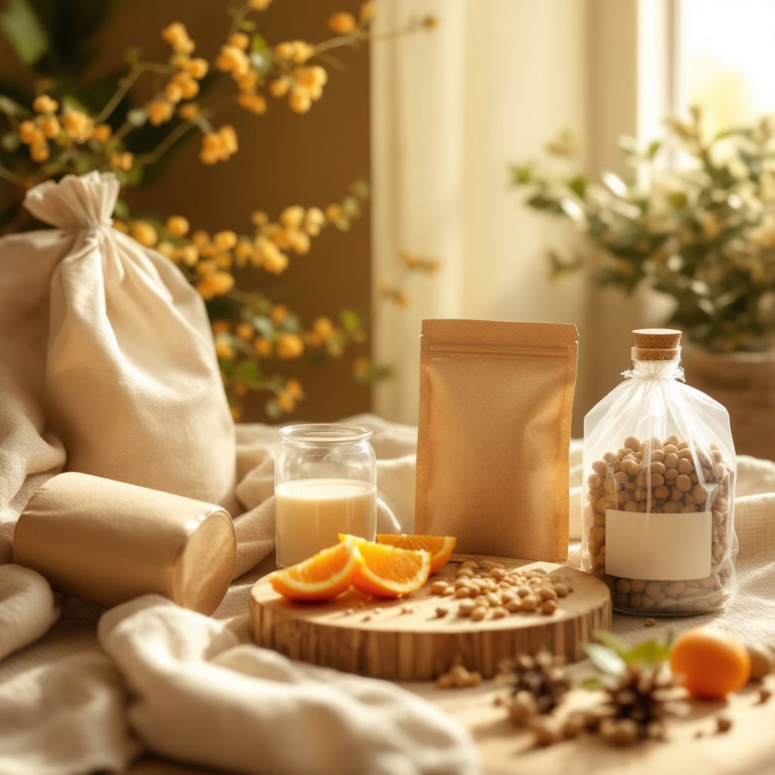 Naturalne materiały (biodegradowalne folie, papiery) nie zawierają szkodliwych chemikaliów. To ważne, zwłaszcza przy żywności.